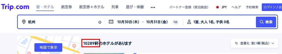 トリップドットコムは中国系の企業だけあって、アジア圏のホテル掲載数が豊富。